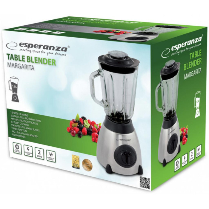 Esperanza EKM020 - це незмінний помічник в будинку, який робить багато кухонних процесів доступними для вас. Головна ємність приладу - чаша - розрахована на 1,5 літра. Ножі блендера виконані з високоміцної нержавіючої сталі, таким чином вони прослужать вам довгий час. Також, ножі блендера самозатачивающиеся, їх не буде необхідності змінювати.