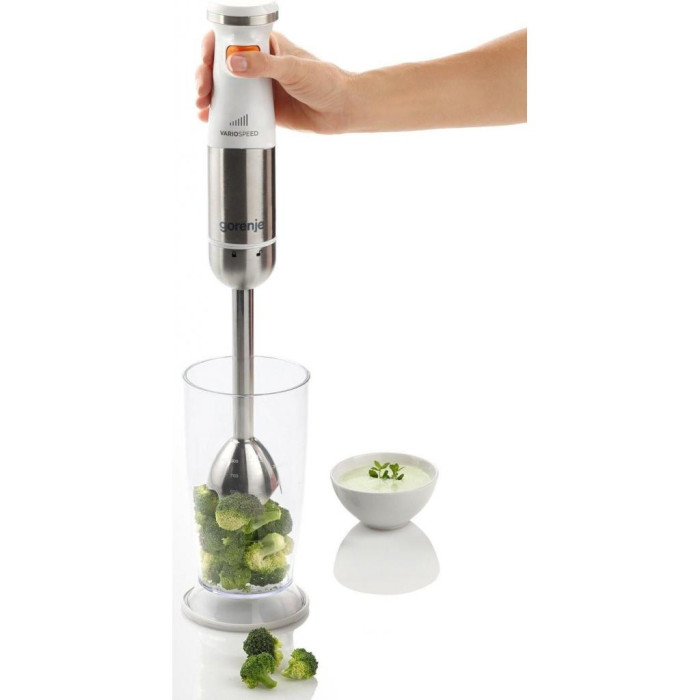 Знімна насадка-блендер. Просте використання і очищення. Після завершення роботи просто зніміть занурювальну насадку і промийте під проточною водою. Крім того, блендер не вимагає багато місця для зберігання. Широкий вибір насадок. Додаткові варіанти використання. За допомогою додаткових насадок погружной блендер перетворюється в універсального кухонного помічника.