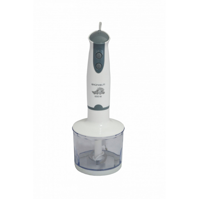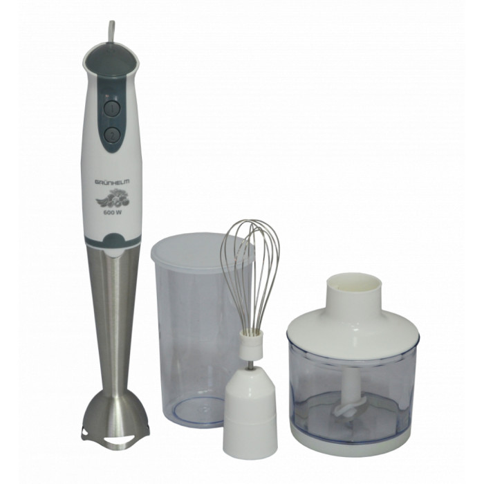 Grunhelm EBS-600SS - безпечний в роботі, потужний, надійний побутовий прилад, який стане відмінним помічником на різній кухні. Підійде для подрібнення, дроблення, збивання, змішування різних інгредієнтів, готування коктейлів і т. д. Блендер білого кольору обладнаний електродвигуном потужністю 600 Вт, що забезпечує швидко виконувати всі поставлені завдання. Ніжка цього приладу зроблена з нержавіючої сталі високої якості, а моторний блок з ударостійкого пластику. Серед особливих характеристик можна виділити наявність чаші подрібнювача об'ємом на 0,5 л з міцними металевими ножами і 2 швидкості роботи, що істотно розширює функціонал цієї моделі. Всі ці якості роблять придбання цього блендера правильним і економічним рішенням.