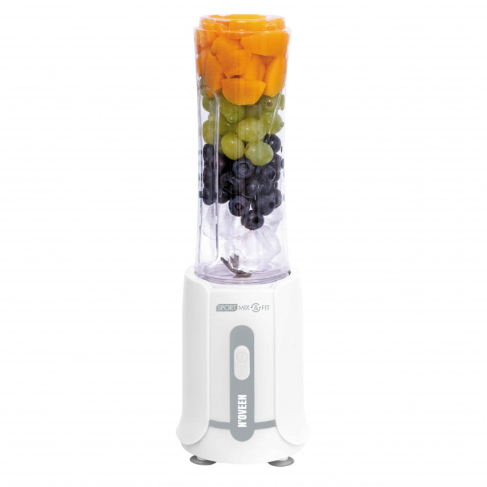 Фітнес-блендер Noveen Sport Mix & Fit SB230 - це ідеальне поєднання потужності, функціональності та сучасного зовнішнього вигляду. Придумано, щоб стати незамінною допомогою будь-кому, хто цінує активність та здорову їжу. Завдяки додатковим аксесуарам, смаком улюблених коктейлів можна насолоджуватися в будь-яких умовах.