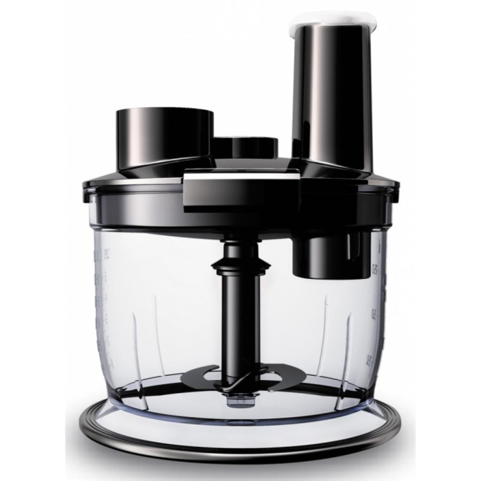 Простота приготування страв-насадка для подрібнення полегшить вашу роботу, легко справляючись, наприклад, з цибулею або м'ясом. При необхідності можна відрегулювати швидкість подрібнення в залежності від твердості інгредієнтів, використовуючи уповільнений режим для овочів і швидкий режим для твердих продуктів, таких як горіхи і сухарики. Для нарізки овочів також передбачений спеціальний дисковий ніж, а віночок для збивання дозволить швидко і рівномірно збити вершки або яєчний білок, заощаджуючи час і зусилля при приготуванні солодощів.