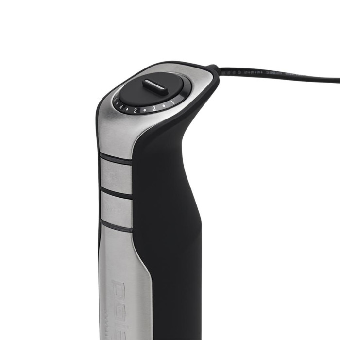 Для роботи з щільними інгредієнтами важлива не тільки потужність двигуна, але і міцні насадки і занурюються частини. Ніжка блендера зроблена зі сталі, тому вона дуже міцна і не піддається впливу корозії. Крім цього, сталь застосовують для роботи з їжею через те, що вона не взаємодіє з нею хімічно і не сприяє утворенню шкідливих сполук. На рукояті розташовані керуючі елементи, що дозволяють керувати експлуатацією.