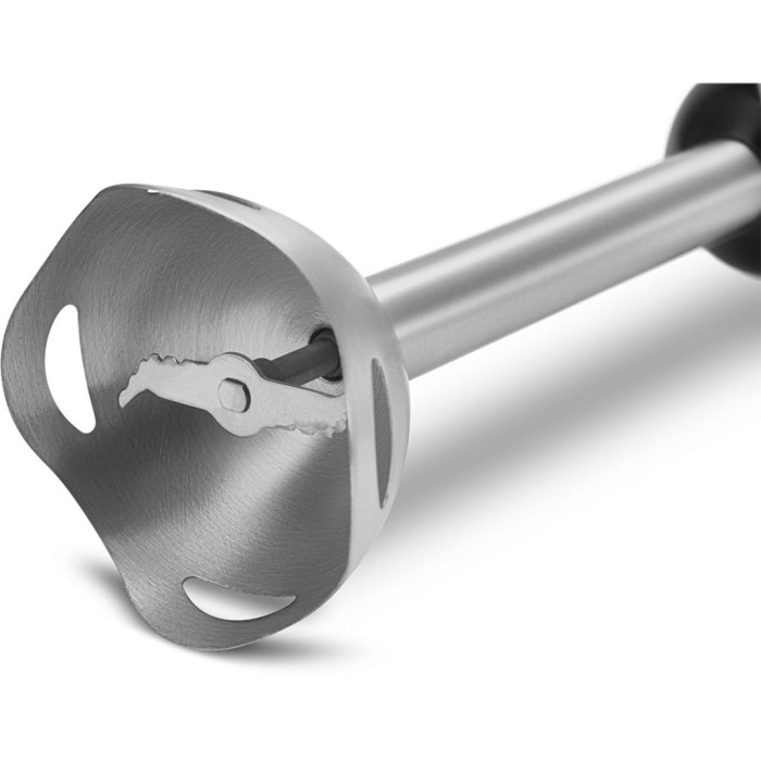 Блендер Polaris PHB 1072 Black орієнтований на три основні операції: змішування, збивання і подрібнення. Для цих цілей він оснащений насадкою з ножами і вінчиком: перший варіант справляється з густішими і щільними складами, а другий використовується для легких мас. Ергономічна конструкція корпусу чудова в роботі, прості в освоєнні елементи управління допоможуть легко і швидко налаштувати прилад на потрібні опції. Невелика вага конструкції оптимальна, якщо ви не хочете перевантажити кисть.