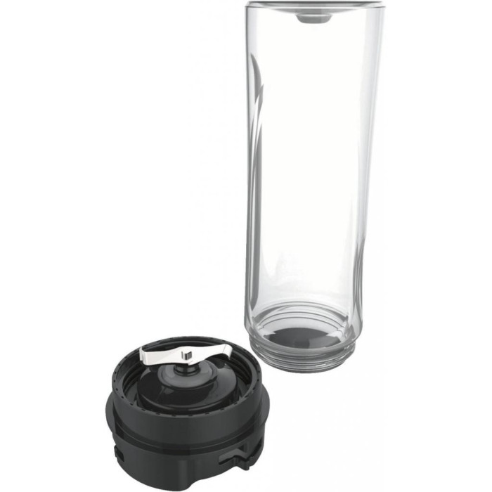 Відмітною особливостю цього примірника від попередніх аналогів є його феноменальна потужність 300 Вт, завдяки якій за лічені секунди готуються, доводяться до потрібної консистенції продукти. У комплекті йдуть дві ємності для поглинання питних коктейлів на ходу об'ємом 600 мл кожен, дно не ковзає, шийку надійно закривається, тим самим запобігають розливанню вмісту.
