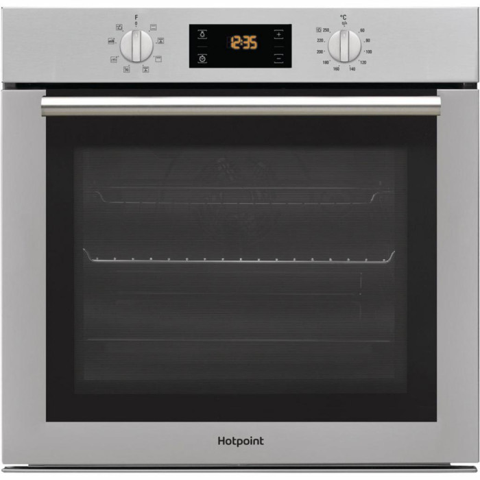 HOTPOINT ARISTON FA4S 841 J IX HA виконана в кольорі нержавіючої сталі, завдяки чому вдало впишеться в будь-який сучасний інтер'єр. Для вбудовування духовки підійде ніша розмірами 56 х 58.3 х 56 см.