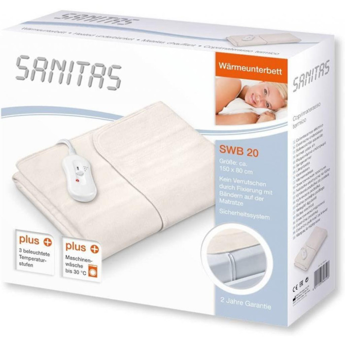 Матрац з обігрівом Sanitas SWB 20 являє собою електричну грілку, яка дозволить створити оптимальні температурні показники, коли навколо холодно, а ви застудилися або просто маєте потребу в якнайшвидшому отриманні тепла. Форм-фактор тонкого матраца дозволить підстелити виріб замість простирадла, тим самим замінивши собою перший шар, який безпосередньо стикається зі шкірою. Так ви отримаєте максимальну тепло, тим самим, не перешкоджаючи розігріву тіла.