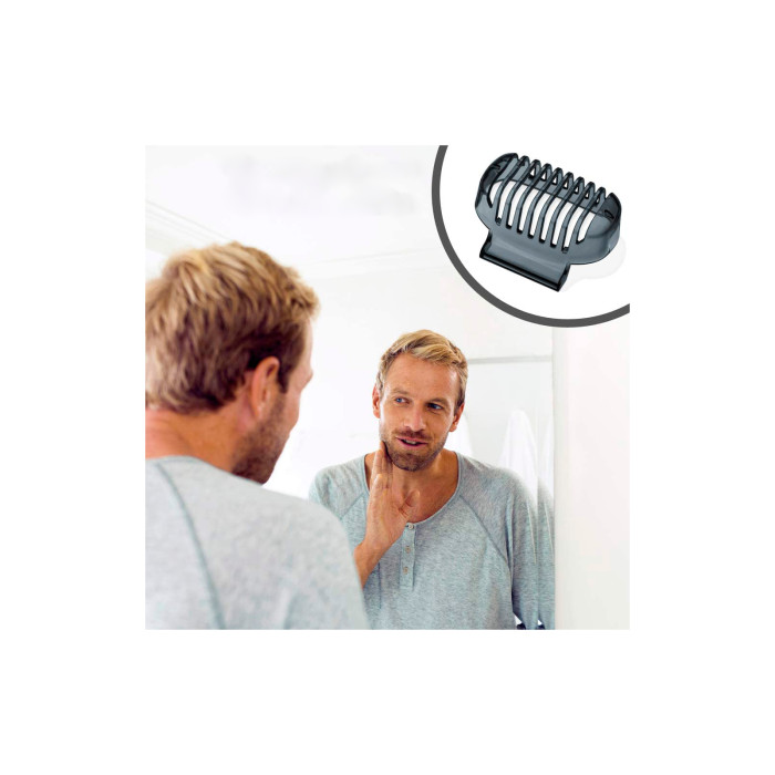 Ідеальне укладання бороди: Захисний ковпачок ідеально підходить як насадка для стриження триденної бороди. Тример для створення чітких країв і контурів бороди й бакенбардів;