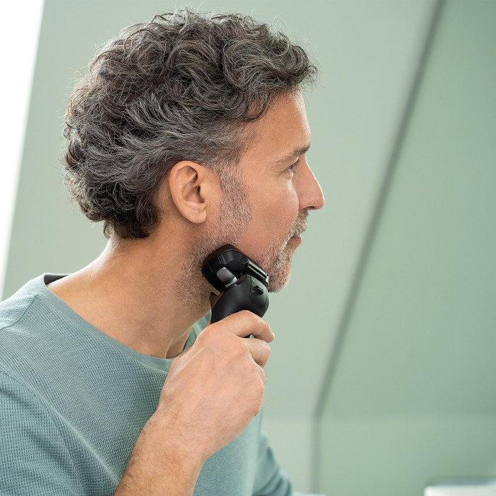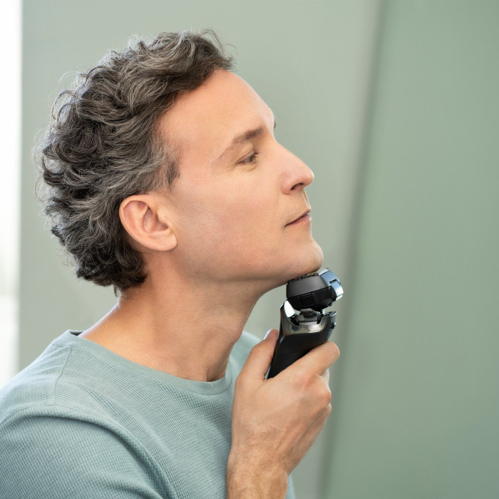 Скульптурна ергономічна конструкція гарантує простоту використання. А матовий крафтовий чорний колір підкреслює високу якість виробу. Світлодіодні індикатори бритви показують стан її роботи та заряд акумулятора за допомогою 20 ступенів.
