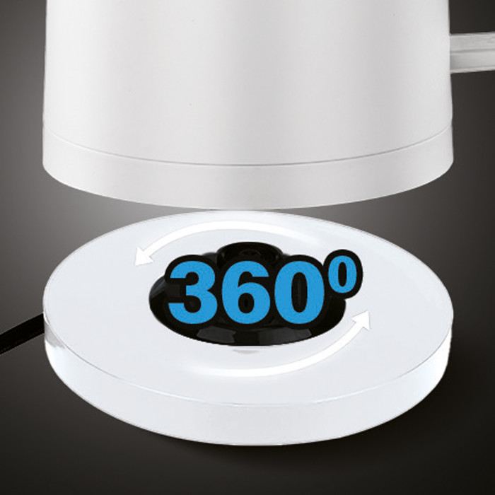 Висока мощность 1850 Вт, місткий обсяг 1.8 літра, система «Ідеальний носик», що дозволяє уникнути утворення крапель і розбризкування напою, індикація рівня води, поворотна на 360 ° база з місцем для зберігання шнура роблять використання чайника Geo максимально простим і зручним