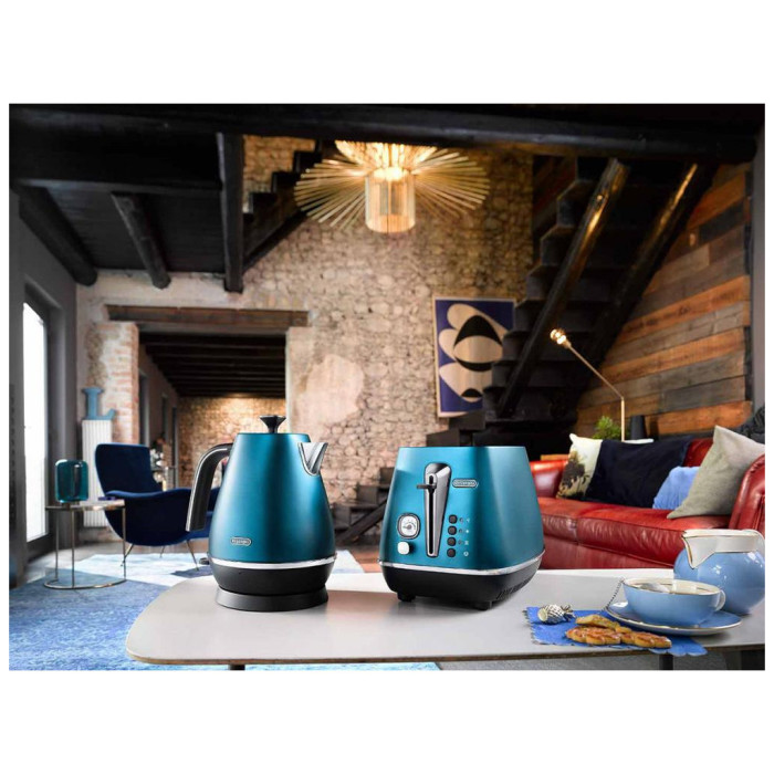 Електрочайник DeLonghi KBI 2001- це стильний і ергономічний кухонний прилад, який прикрасить будь-який інтер'єр. Відкривати і закривати кришечку дуже зручно, а носик має спеціальну форму для того, щоб ви не пролили жодної краплі. Дизайнерська серія Distinta – хромовані деталі і незвичайні кольори.