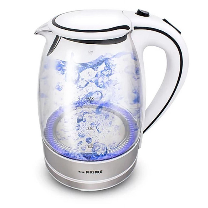 Електрочайник Prime Technics PKG 1702 W, вдало поєднує в собі стильний привабливий дизайн і хороші технічні характеристики. Завдяки потужності 2200 Вт, чайник здатний за кілька хвилин закип'ятити до 1,7 л води. Прихований нагрівальний елемент дискового типу гарантує скорочення часу нагріву та підвищення рівня безпеки експлуатації чайника. Корпус чайника виготовлений з високоякісного скла, яке має хороший запас міцності і є невибагливим в обслуговуванні. LED підсвітка додає розкішності та елегантного вигляду приладу. Крім цього, в чайнику є фільтр від накипу та індикатори, що дозволяють відстежити рівень води і його включення. Функція автоматичного вимкнення забезпечує захист від перегріву.