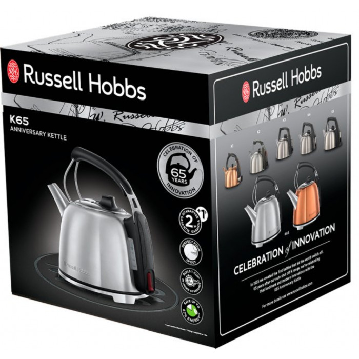 Чайник колекції K65 з матовою обробкою з високоякісної нержавіючої сталі і культової форми, функціональність і зручність розташування ручки на корпусі внесуть нотки ностальгії і ретро в Ваш будинок. При цьому чайник поєднує в собі сучасні технології і класичний зовнішній вигляд.
