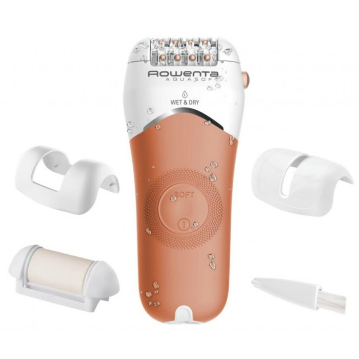 Видаляйте волосся дбайливо, швидко і без побічних ефектів з новим епілятором Rowenta Aquasoft. Завдяки запатентованій * технології проти роздратування Anti-Irritation і спеціальному м'якому покриттю насадки епілятор ефективно видаляє волоски, не дратуючи шкіру. Корпус епілятора на 100% водонепроникний, тому пристрій можна використовувати як на сухій шкірі, так і під час прийняття душу або ванни, адже вода чинить додаткову заспокійливу дію на шкіру під час епіляції.