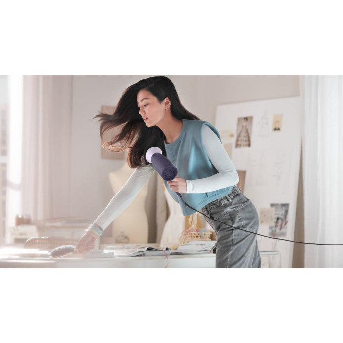 Philips BHD340/10 зі збільшеною потужністю 2100 Вт створює об'ємний потік теплого повітря, який здатний швидко висушити і укласти навіть довге густе волосся. Фен піклується про ваше волосся під час сушіння і підходить для щоденного використання.
