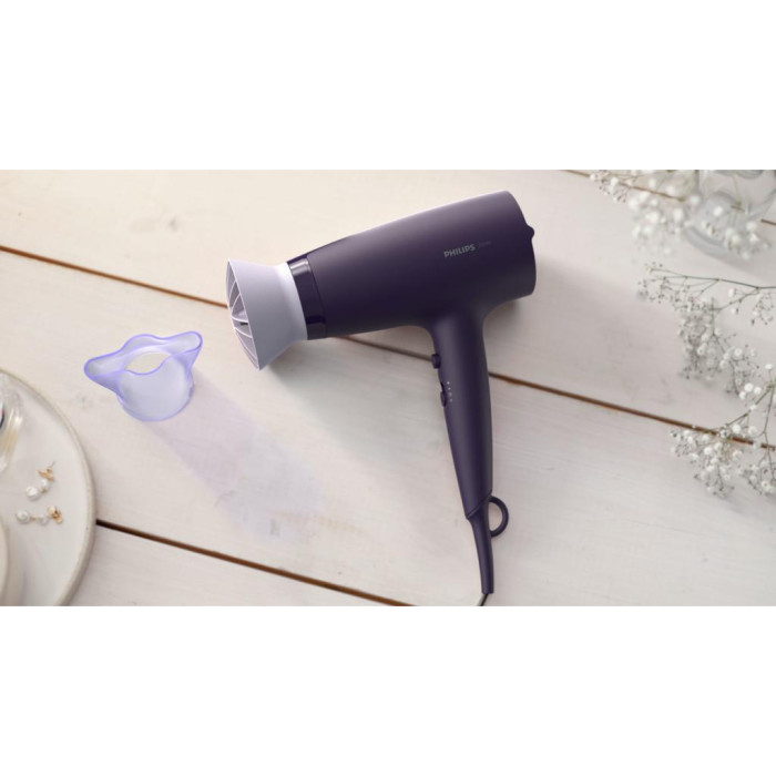 Насадка ThermoProtect з унікальною конструкцією ефективно змішує теплий і холодний потоки повітря і створює оптимальну температуру для сушіння і укладання, забезпечуючи вашому волоссю додатковий захист від перегрівання.