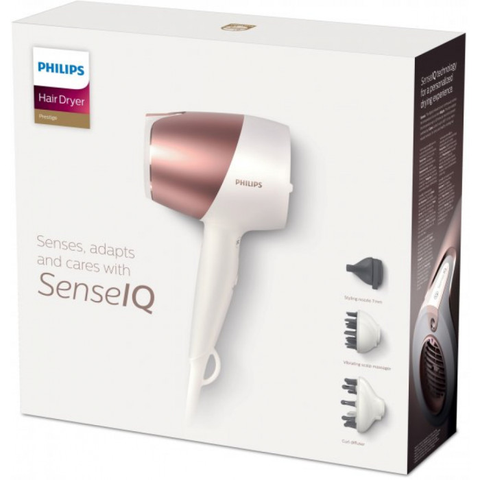 Розумний мікропроцесор – це штучний інтелект SenseIQ. Він аналізує і регулює потік повітря понад 12 000 разів за сеанс сушіння для забезпечення найкращої ефективності, гарантуючи ексклюзивний догляд за вашим волоссям. SenseIQ забезпечує розумне керування нагріванням для догляду за вашим волоссям унікальним способом.