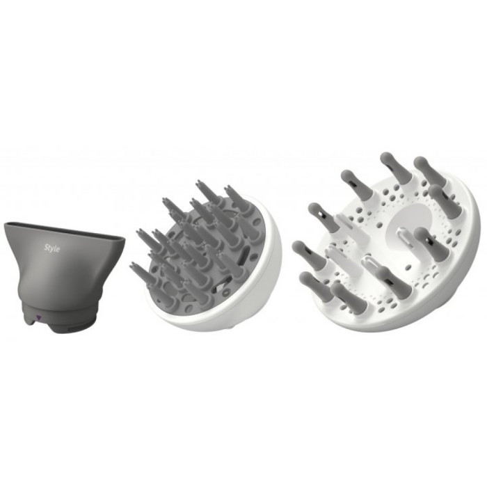 Збільшуйте об’єм, товщину та пружність локонів за допомогою дифузора для об’ємної завивки. Режим завивки вибирається автоматично після під’єднання насадки. Дрібні текстурні пальчики дифузора допомагають поширювати потік повітря по волоссю, збільшуючи об’єм та зменшуючи скуйовдження під час сушіння. Для додаткового об’єму тримайте дифузор близько до голови та ділянки коренів.