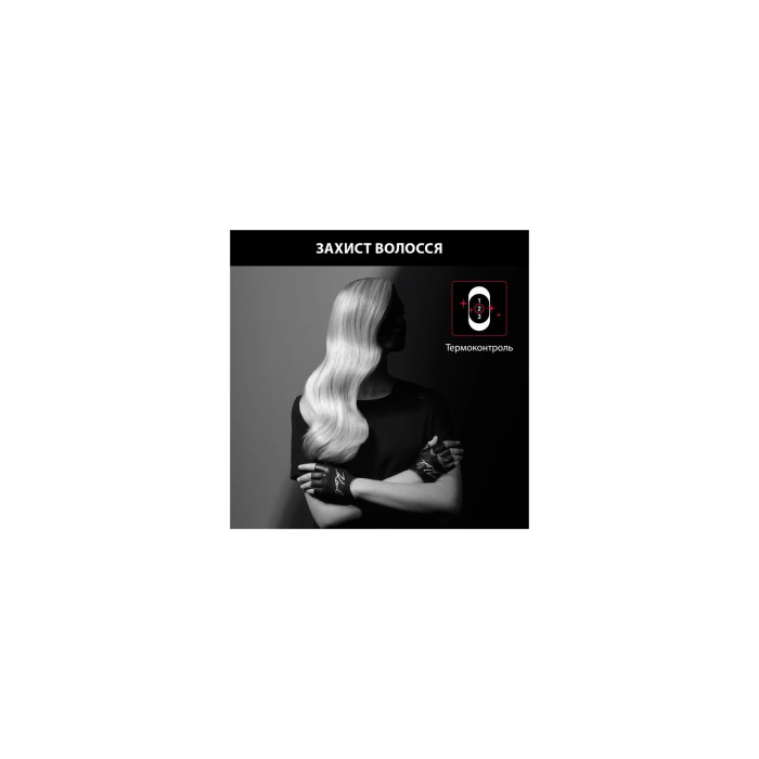 Фен Rowenta STUDIO DRY x KARL LAGERFELD CV581LF0. Швидке висихання без зайвих зусиль: фен Rowenta x KARL LAGERFELD Studio Dry Fen забезпечує бездоганне сушіння та привабливий стиль. Енергозберігаючий мотор потужністю 2300 Вт забезпечує ідеальні результати сушіння в найкоротші терміни, а функція Thermo Control захищає волосся від надмірного тепла та підтримує здоров'я та блиск вашого волосся. Легкі налаштування швидкості/температури забезпечують повний контроль над вашим стилем, з тонким концентратором для створення найдрібніших деталей