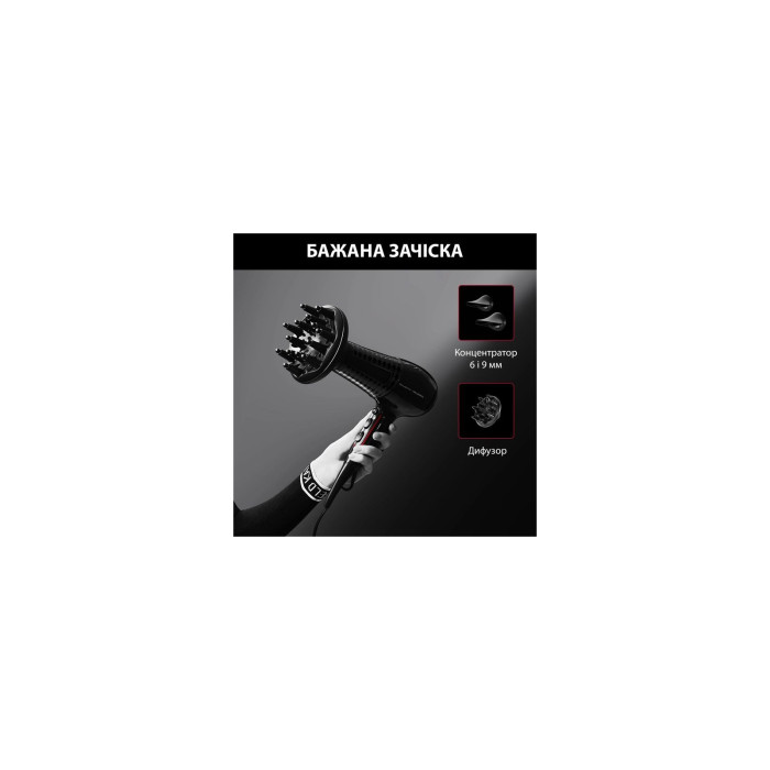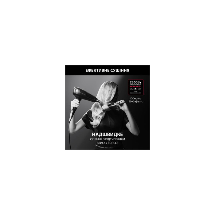 Фен Rowenta POWERLINE KARL LAGERFELD CV591LF0. Відкрийте для себе ідеальну укладку з легким блиском, яка завжди привертає увагу! Фен Rowenta x KARL LAGERFELD Powerline забезпечує енергозберігаючу потужність 2300 Effiwatt, а іонний підсилювач зменшує завивку та робить ваше волосся гладким, слухняним і надає сяючого блиску. Відкрийте для себе ідеальний фен, доповнений інтелектуальними функціями, такими як легке регулювання швидкості/температури для повного контролю над укладанням, термоконтроль для захисту вашого волосся тощо