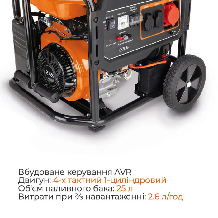 Бензиновий генератор IX-BGS-7100 забезпечує резервне електроживлення для різних електричних приладів загальною потужністю 5000W.