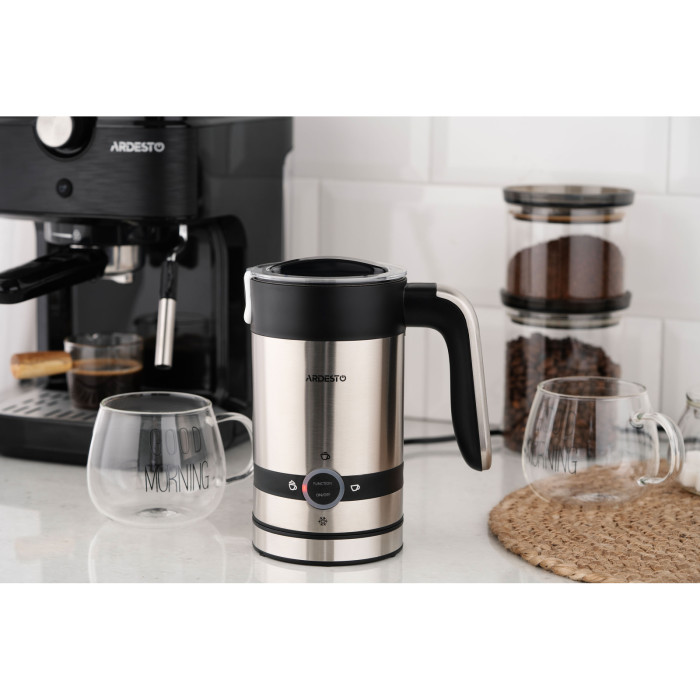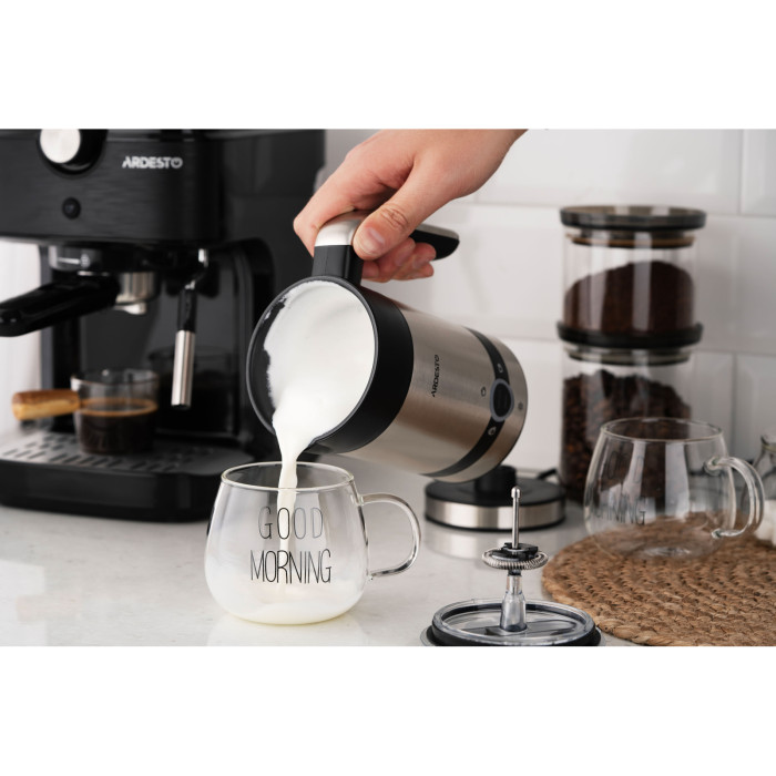 Спінювач молока ARDESTO MBC-D450 – це компактний та ефективний пристрій для приготування стійкої молочної піни для улюблених напоїв. Вироблена з нержавіючої сталі, модель сріблясто-чорного кольору не тільки вдало пасуватиме чи не до будь-якого інтер’єру кухні, але й слугуватиме впродовж тривалого часу. Спінювач вирізняється високою потужністю (450 Вт) – можливість збивати бездоганну піну за лічені хвилини