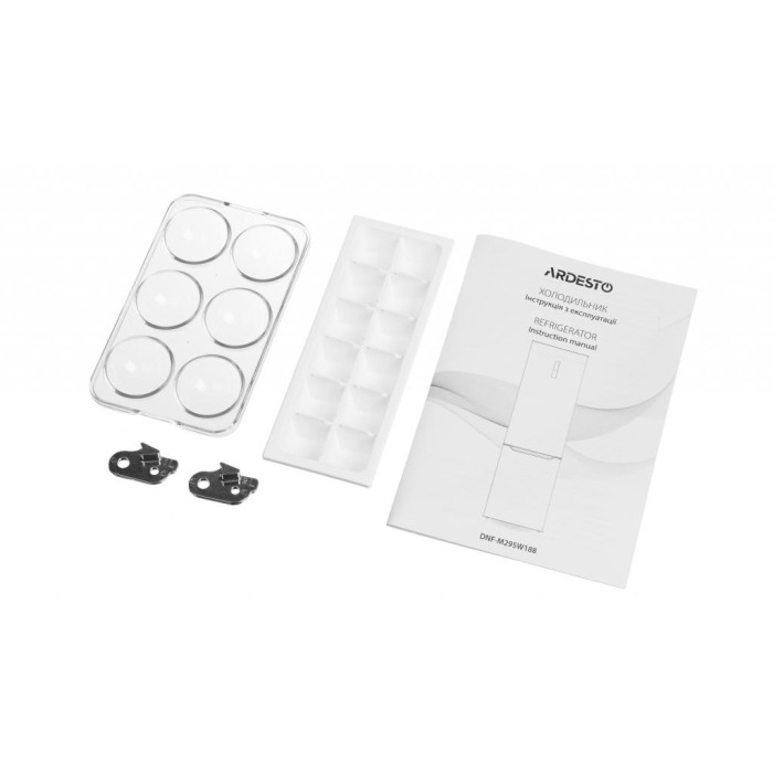 Висота холодильника – 188 см, а ширина складає 59.5 см. Вага – 61 кг. Ручки для відкриття – вбудовані, Ardesto DNF-M295W188 буде добре виглядати в приміщенні середніх розмірів, наприклад у кухні або вітальні.