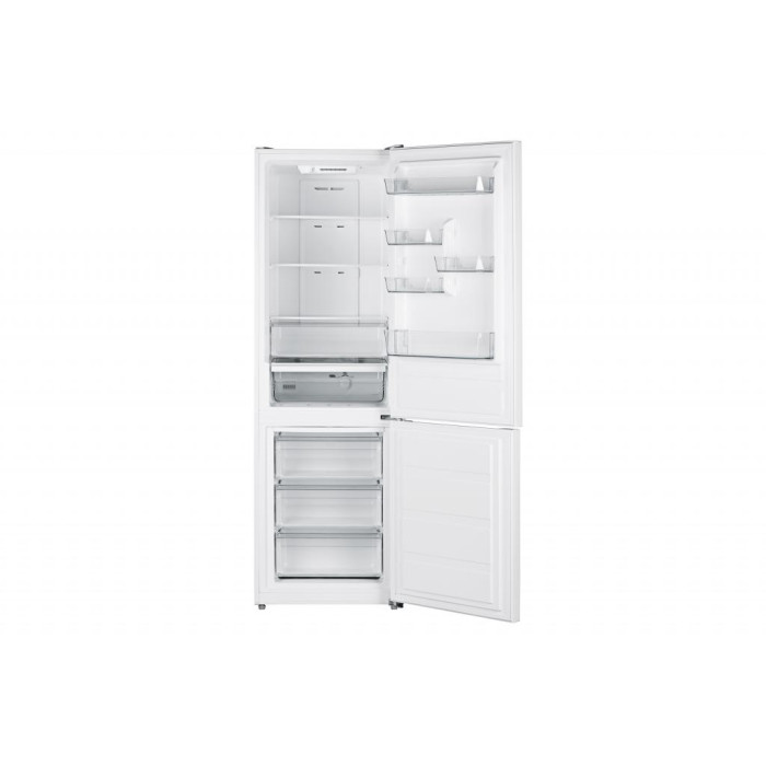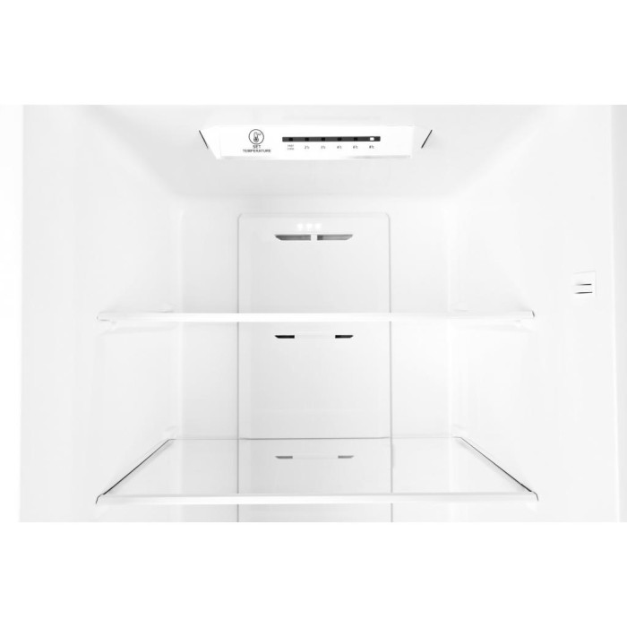 Система No Frost-охолодження ефективно розподіляє потоки холодного повітря по внутрішнім камерам та запобігає утворенню конденсату та намерзань. Керування комбіноване – електронне, зі світлодіодною індикацією для холодильного відсіку та механічне для морозильного.