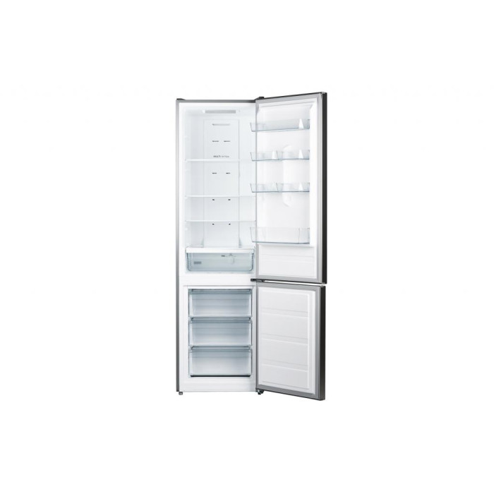 Система No Frost-охолодження ефективно розподіляє потоки холодного повітря по внутрішнім камерам та запобігає утворенню конденсату та намерзань. Керування комбіноване - електронне, зі світлодіодною індикацією для холодильного відсіку (від 2°C до 8°C) та механічне для морозильного (від -16°С до -24°С). Для швидкого охолодження передбачено режим Fast Cool.