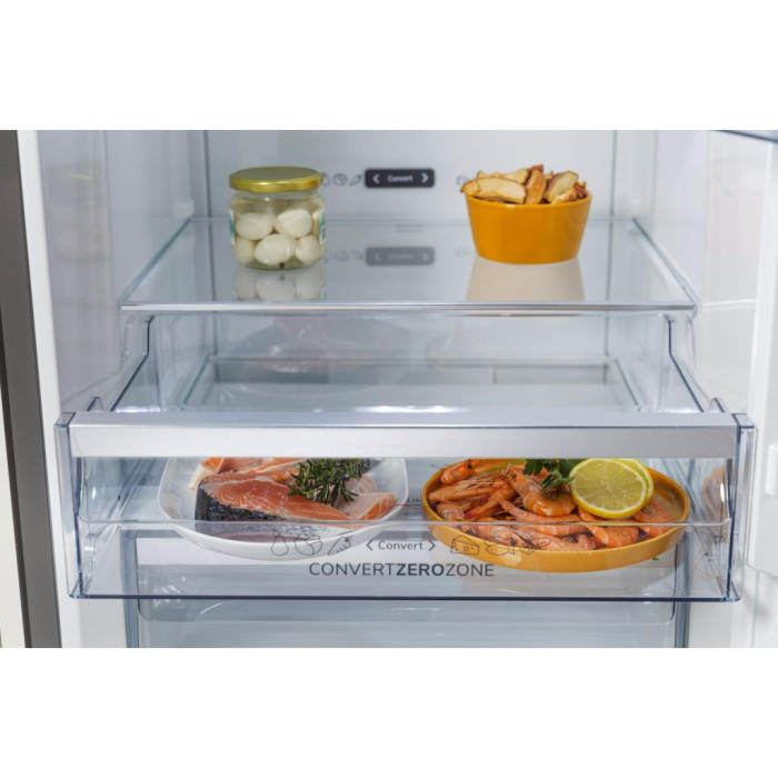 Завдяки функції ConvertActive можна простим натисканням кнопки перетворити морозильну камеру на холодильний відсік або велику зону ZeroZone, щоб отримати більше місця для зберігання закусок і напоїв.