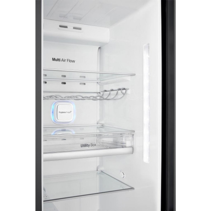В рамках технології Hygiene Fresh + від LG використовується фільтр, що усуває більшість причин псування їжі: пил, грибки, кислий, лужної запах і бактерії. Система усуває до 99.9% містяться в повітрі речовин, які забруднюють їжу, і очищає повітря в холодильнику, продовжуючи термін зберігання продуктів.
