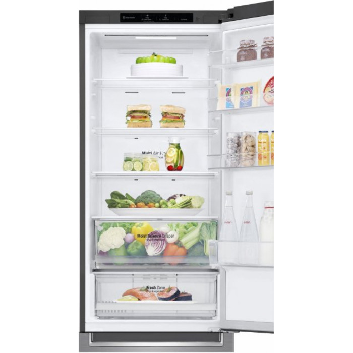 Холодильник LG GW-B509 має мінімалістичний дизайн з нульовим зазором корпусу. Корисний об'єм склав 384 л. Технологія Total No Frost знімає всі турботи з розморожування – воно не потрібне. Опція DoorCooling+ стала запорукою рівномірного якісного охолодження і хорошої вентиляції. Металева пластина Metal Fresh дає додатковий холод і служить елементом декору. Відділення FRESHBalancer і FRESHConverter забезпечують оптимальні показники температури і вологості для продуктів різного типу.