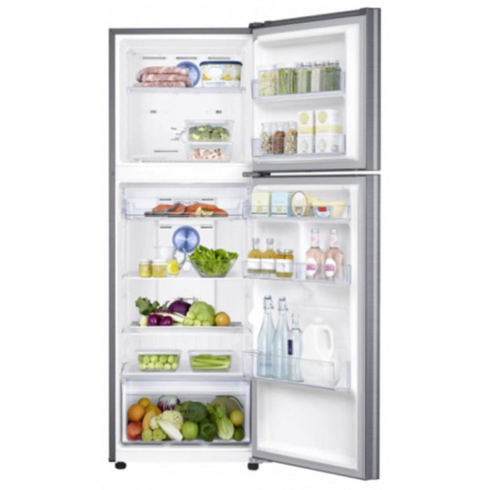 Даний холодильник Samsung з верхньою морозильною камерою поєднує кілька систем вентильованого охолодження, тому продукти в ньому довше підтримують свіжість. В холодильному відсіку регулюється оптимальний рівень вологості та прохолоди, а їжа в морозильній камері заморожується без криги. Присутність стабільного клімату та найкращих умов дозволяє зберегти властивості навіть чутливих десертів, фруктів, овочів або риби. До того ж, поєднання таких технологій забезпечує збалансовану й економну роботу холодильника.