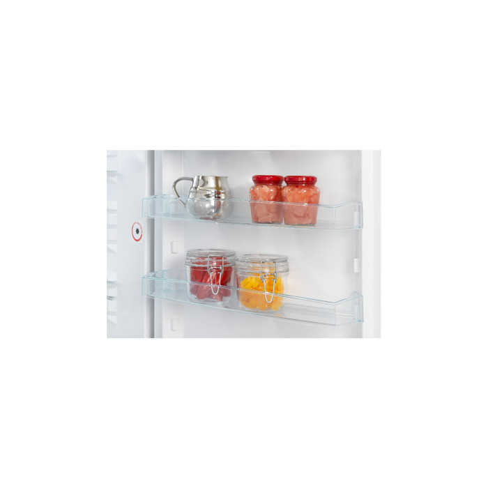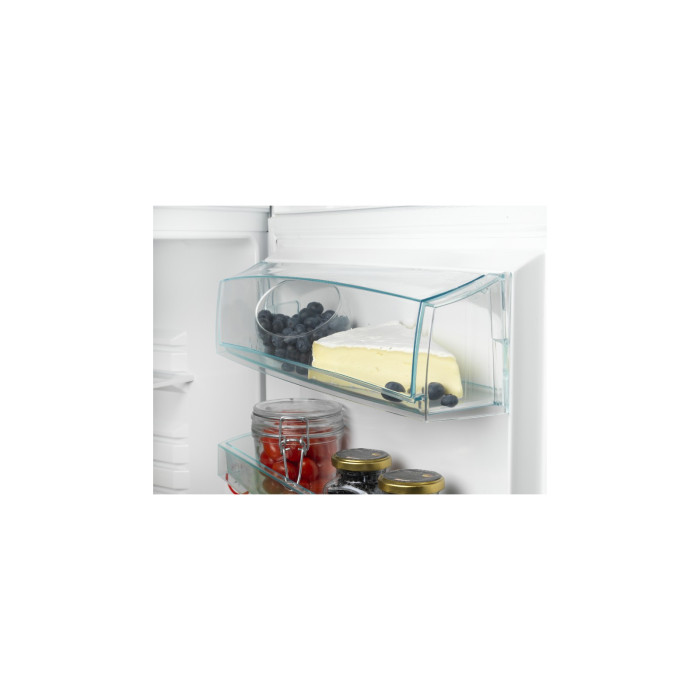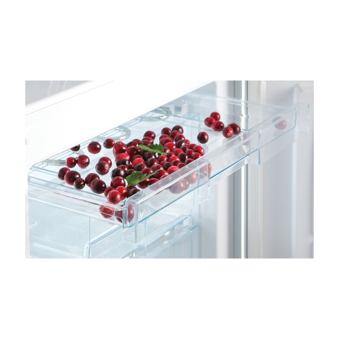 глибока ванночка для пляшок , перенавішування дверей , підставка для яєць , висувний ящик для дрібних продуктів , ящик fast freeze для швидкого заморожування , полиця над висувним ящиком fruit&vegs для овочів та фруктів , змінні по висоті дверні ванночки