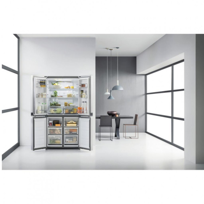 Ця модель холодильника Whirlpool оснащена системою вентиляції, яка забезпечує рівномірне розподілення охолодженого повітря по всій камері. Whirlpool Side-by-Side забезпечить Вам необхідний простір для комфортного зберігання їжі та напоїв. Whirlpool з Side-by-Side з класом енергоефективності А++ забезпечить якісні результати у поєднанні з низьким рівнем енергоспоживання.