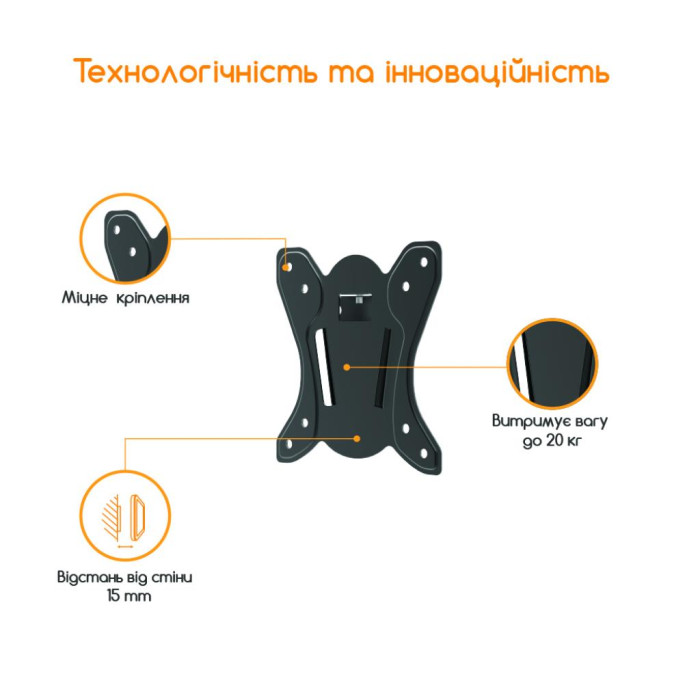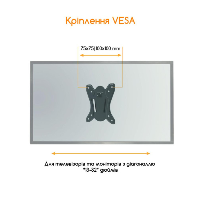 - Підтримує телевізори та монітори з діагоналлю 13-32 дюйми;