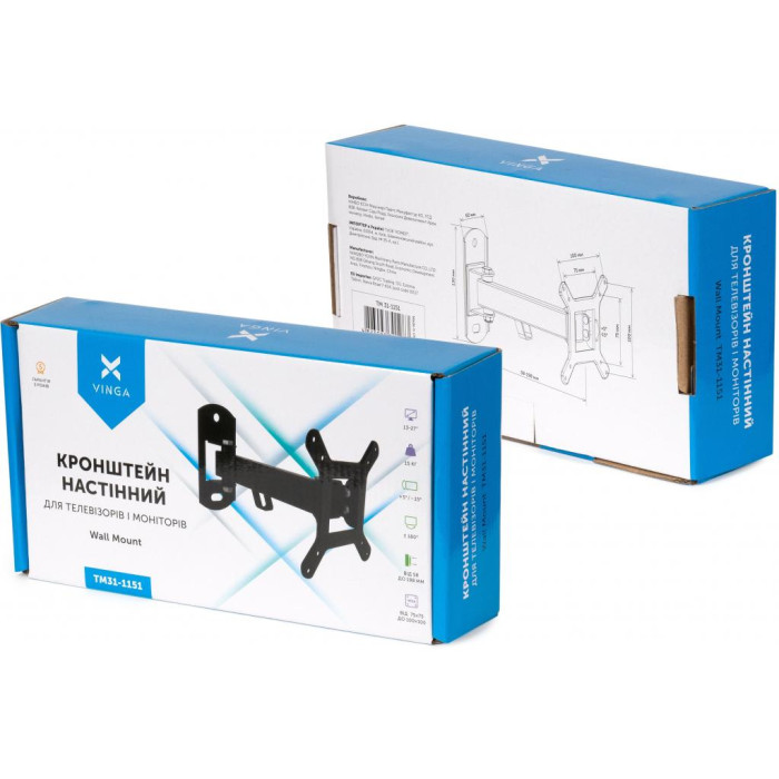 За допомогою настінного кронштейна Vinga ви можете розташувати ЖК, плазмову і ультратонку LED панель практично в будь-якій частині кімнати. Він може вирішити проблему з розміщенням екрану в тому випадку, коли неможливо або небажано використовувати підставку або шафа.