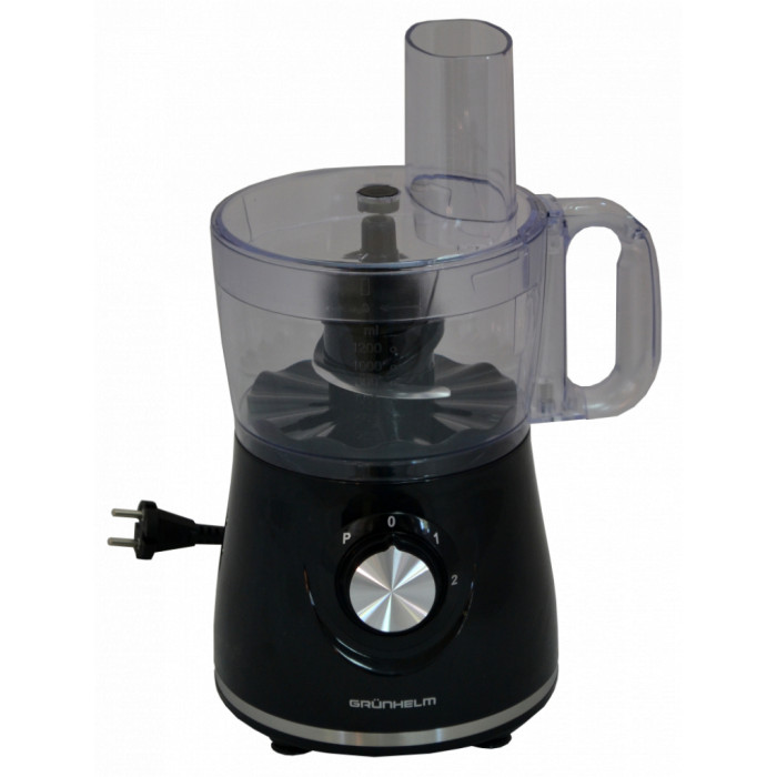 Grunhelm GFP-854JBE може якісно забезпечити вам ефективну роботу. Все завдяки наявності двох режимів швидкостей, а також режиму турбо швидкості і імпульсного режиму. Кожен продукт необхідно обробляти під різними швидкостями для того, щоб більш ефективно з ним працювати. Прилад має в комплекті поставки багато насадок, які дадуть багато можливостей для вашого готування. Так, за допомогою подрібнювача ви зможете змішувати продукти і подрібнювати їх. У комплекті також є ніж для терки, шинкування, а також міні-подрібнювач.