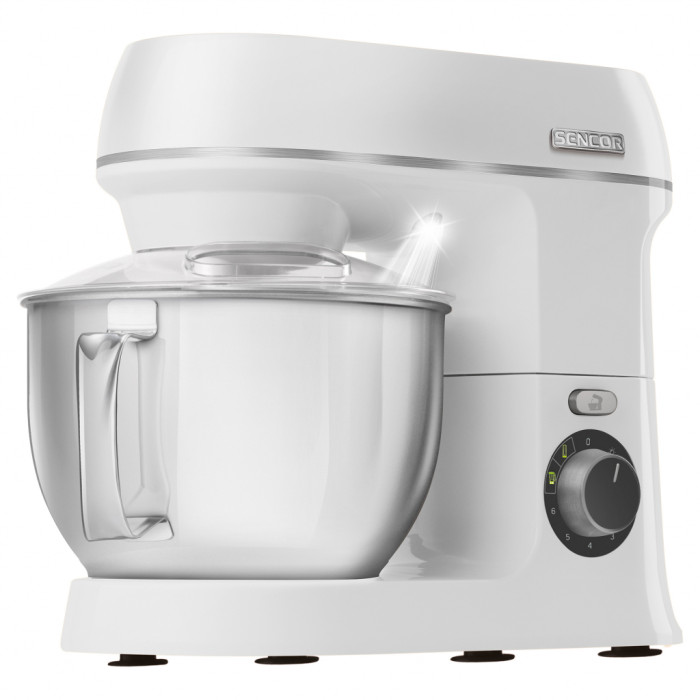 Змішування відбувається в металевій нержавіючій чаші об'ємом 4 літри. На ній є позначки, щоб орієнтуватися за кількістю вмісту. А щоб ви могли працювати без перешкод навіть в темний час доби, на корпусі встановлена світлодіодна лампа, яка підсвічує чашу в процесі функціонування. Так ви не пропустите жодного моменту, розуміючи, як йде процес готування.
