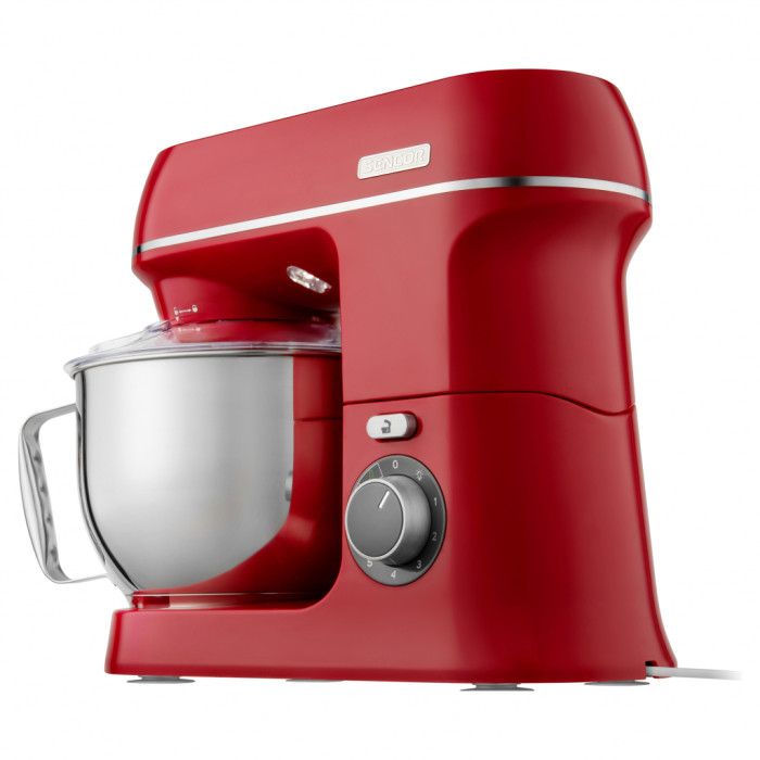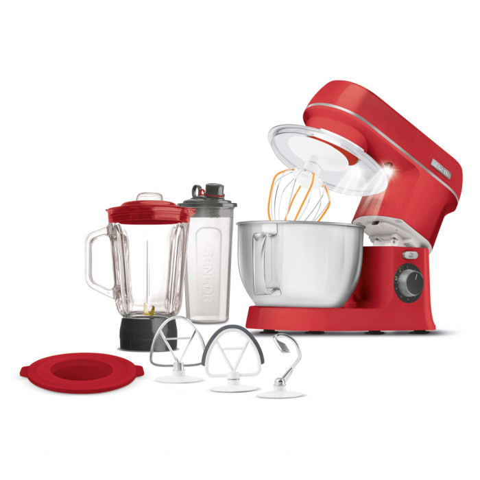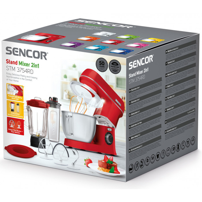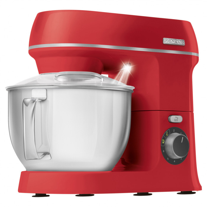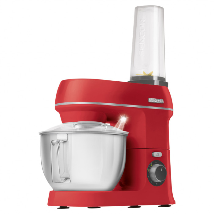 Кухонний комбайн Sencor STM 3754RD-EUE3 представлений в форматі настільного типу, зручний на практиці і дає можливість працювати з різними складами. Для того, щоб мати можливість швидко обробляти найщільніші і в'язкі речовини, виробник вибрав в якості бази мотор потужністю 1000 Ватт. Двигун захищений стильною оболонкою в червоному кольорі, яка надає яскравий і привабливий образ пристрою.