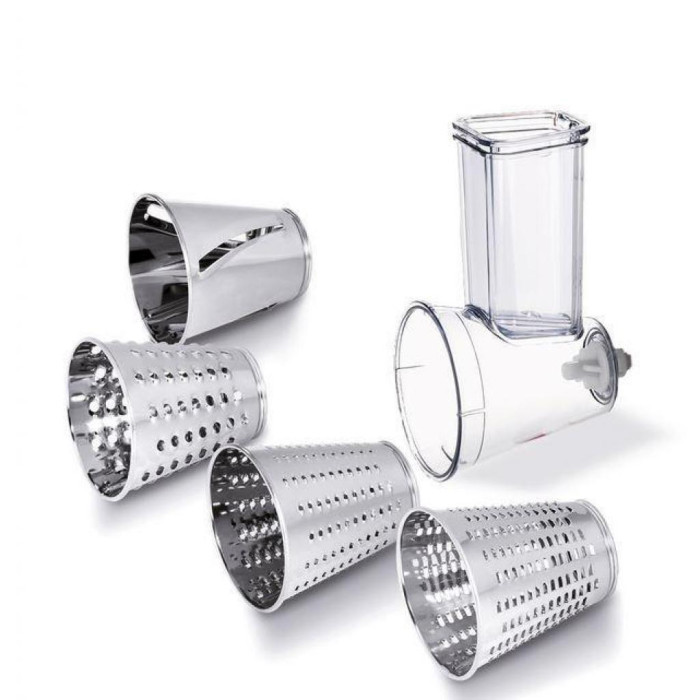 Унікальний вінчик. Завдяки унікальному вінчику Flex Whisk отримуйте чудові повітряні збиті яєчні білки навіть з єдиного яйця. Використовуючи металевий гачок, підготуйте тісто для хліба або піци. Все це за допомогою точно оформленого корпусу з красивою чашею і кнопками. Підготуйте смачні домашні страви з аксесуарами: блендер з нержавіючої сталі, терка / ломтерезка і м'ясорубка.