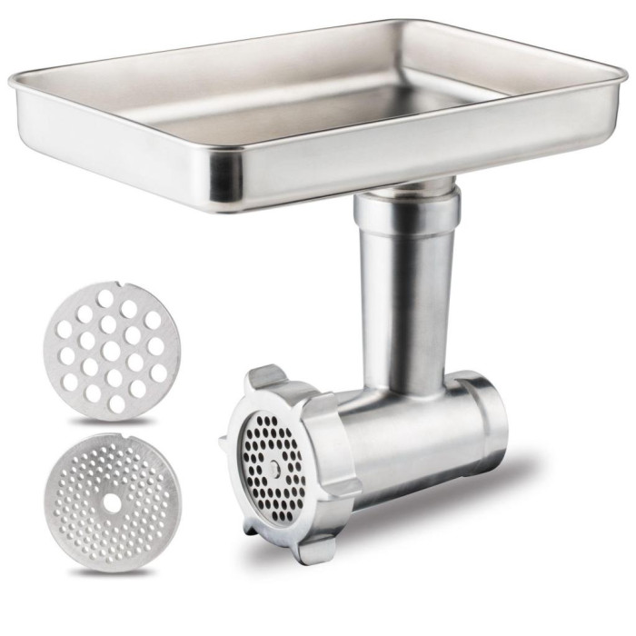 Основні насадки. Модель комплектується такими основними насадками: Мясорубка; Блендер; Віночок; Для збивання; Для замішування тіста; Для шинкування (нарізки скибочками); Велика терка; Дрібна терка; Для дерунів.