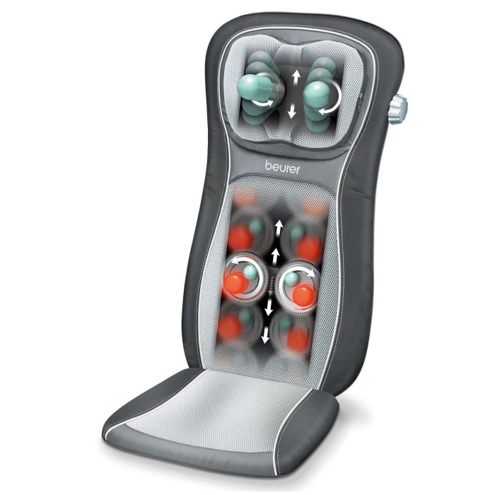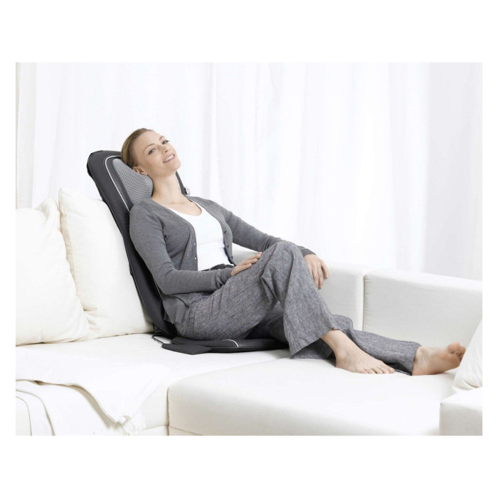 За допомогою масажної накидки на крісло Beurer MG 254 ви зможете провести сеанс шиацу масажу, підвищити м'язовий тонус і зняти втому. Чотири масажні головки виконують інтенсивний масаж уздовж хребта, два масажних пальця призначені для масажу шиї. Ви можете вибрати зону масажу і його інтенсивність. Висота блоку для масажу шиї регулюється спеціальною рукояткою. Масажер має підключається функцію підсвічування і підігріву масажних головок. Прилад оснащений функцією автоматичного відключення, яка налаштована на максимальну тривалість роботи 15 хвилин...