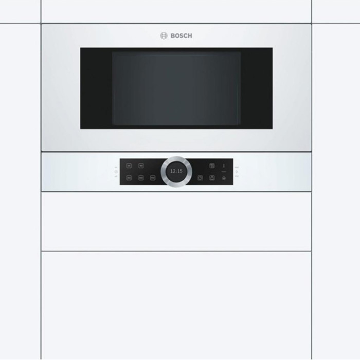 Мікрохвильова піч BOSCH BFL 634 GW1 (BFL634GW1) - функціональна мікрохвильова піч для вбудовування, яка не тільки допоможе приготувати різні страви з найскладніших рецептами, але також делікатно розморозить всі необхідні інгредієнти або швидко розігріти раніше приготовані страви. При цьому модель відрізняється не тільки багатим функціоналом, але і стильним ексклюзивним зовнішнім виглядом. Елегантне біле скло, прямі лінії і унікальний сріблястий поворотний регулятор, не тільки вдало поєднуються один з одним, але і чудово доповнюють і прикрашають сучасний кухонний інтер'єр.