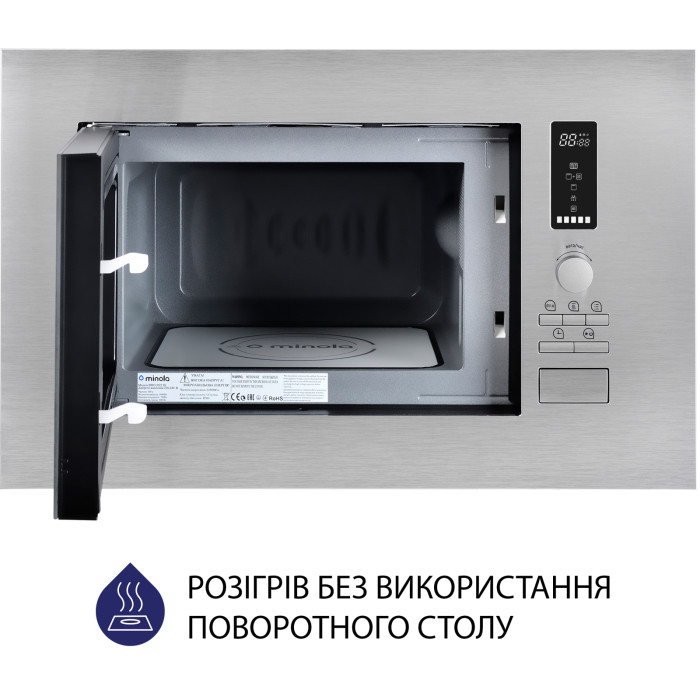 У вбудованій мікрохвильовій печі Minola BWO 2022 SS втілено надсучасні технології! Система рівномірного розподілу мікрохвиль дозволяє розігрівати їжу без обертання на поворотному столі. У внутрішній камері мікрохвильової печі забезпечується справжній 3D-нагрів, що зберігає в їжі вітаміни, мінерали та інші корисні речовини. При цьому витрачається мінімум електроенергії.
