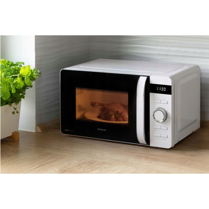 Мікрохвильова піч Sencor SMW 5017WH має велику камеру об'ємом 17 літрів, що ідеально підходить для розігріву більшості стандартних страв або страв. Оснащена багатьма функціями, такими як 5-ступеневе регулювання потужності або функція розморожування. Естетична і міцна конструкція з нержавіючої сталі забезпечує можливість використання протягом багатьох років. Мікрохвильова піч SMW 5017WH — це класична плита, що створена з увагою до деталей. Потужність 800 Вт забезпечує швидкий і збалансований нагрів.