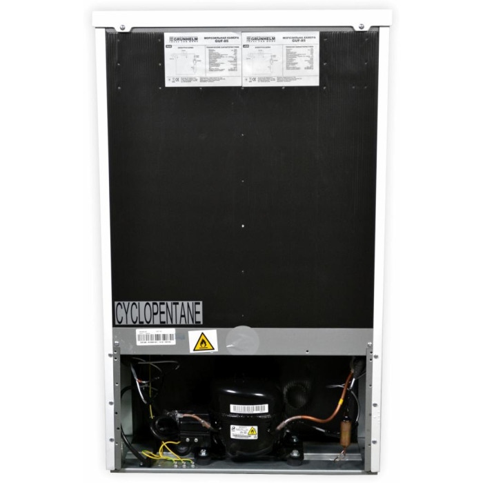 Морозильна камера Grunhelm GUF-85 - універсальний вертикальний холодильний апарат, прекрасне рішення для приватних будинків, дач, магазинів, забезпечує тривале зберігання і заморожування продуктів харчування. Модель Grunhelm GUF-85 отримала оптимальний обсяг камери в 68 л і потужність заморозки 4 кг / 24г, тепер Ви з легкістю можете зберігати м'ясо, овочі, фрукти, готові страви в великому обсязі у себе вдома. А в разі відключення енергоспоживання, морозильна камера Grunhelm GUF-85 може зберігати холод до 15 годин. Також варто відзначити наявність трьох об'ємних кошиків, низьку витрату електроенергії, надійність і компактність. Всі вище перераховані якості роблять покупку даної морозильної камери розумним і економічним рішенням.