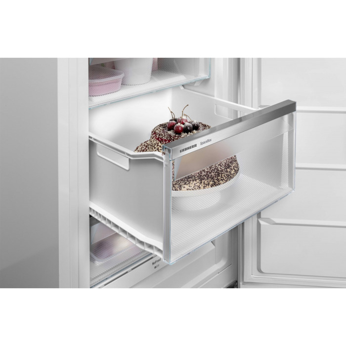 У Liebherr ви розмістите навіть дуже великі продукти: тому що індичці розміру XL або багатоярусному торту-мороженому потрібно просто більше місця. Для таких випадків у вашому Liebherr є SpaceBox: завдяки великій висоті 250 мм він пропонує багато додаткового місця навіть для заморожених продуктів великого розміру. І це допоможе вам у гнучкому зберіганні запасів.