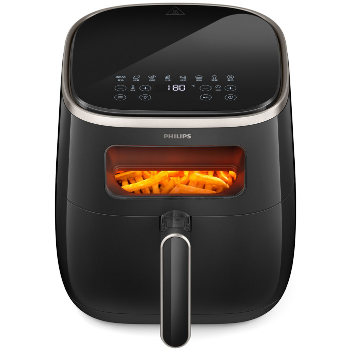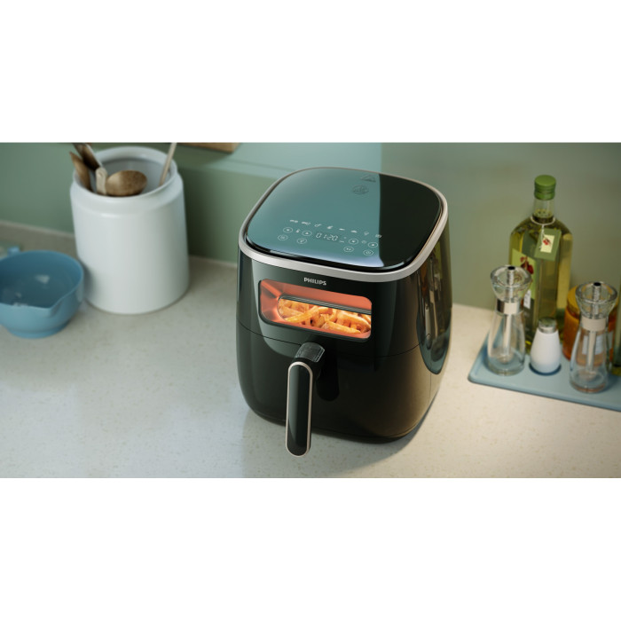 Завдяки прозорому віконцю можете в будь-який момент перевіряти результат приготування та бачити, як улюблені інгредієнти перетворюються на смачну їжу. Мультипіч Philips відкриває цілий світ можливостей: смажте, випікайте, готуйте на грилі, запікайте, сушіть, готуйте тости, розморожуйте, розігрівайте та робіть багато чого іншого. Технологія RapidAir з унікальним дизайном «starfish» (морська зірка) забезпечує циркуляцію гарячого повітря для приготування смачної їжі, хрусткої зверху та ніжної усередині, практично без олії