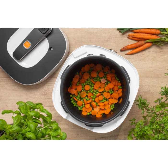Три рівні тиску - низьке / середнє / високе - для різних смаків і бажаної консистенції. У процесі готування багатоступенева система безпеки з клапанами гарантує максимальну безпеку при високому тиску. Просте кнопкове управління дозволяє працювати з скороваркою навіть вологими руками.