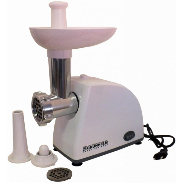 Мясорубка є відмінним помічником на кухні, прискорює процес приготування і значно спрощує його. Перед вами практична і стильна модель м'ясорубки в білому кольорі, виконана з міцного пластику. Також м'ясорубка має металеві частини в конструкції, що говорить про довговічність приладу. Модель досить проста, компактна, має зручну ручку - все, що потрібно для комфортного використання приладу в побуті. Крім цього, м'ясорубку можна назвати потужною (Потужність 1400 Вт) і продуктивної, як для такої моделі (1,7 кг / хвилину).